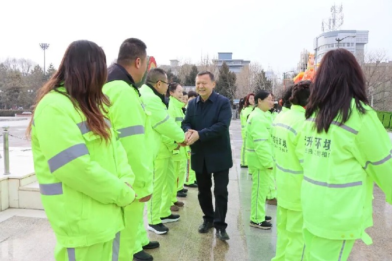 在中心廣場(chǎng)東側(cè),葉爾波力·孜汗與環(huán)衛(wèi)工人親切握手,感謝他們默默堅(jiān)守崗位,守護(hù)城市潔凈。他說(shuō),希望大家繼續(xù)發(fā)揚(yáng)愛(ài)崗敬業(yè)的優(yōu)良品格,不斷提升精致城市精細(xì)化管理水平,為創(chuàng)建全國(guó)文明城市貢獻(xiàn)力量。相關(guān)部門(mén)要關(guān)心關(guān)愛(ài)一線環(huán)衛(wèi)工人,科學(xué)合理安排作業(yè)時(shí)間,落實(shí)好各項(xiàng)防寒保暖措施,保障他們的身心健康。