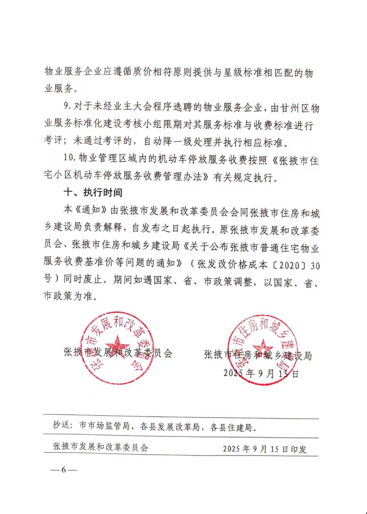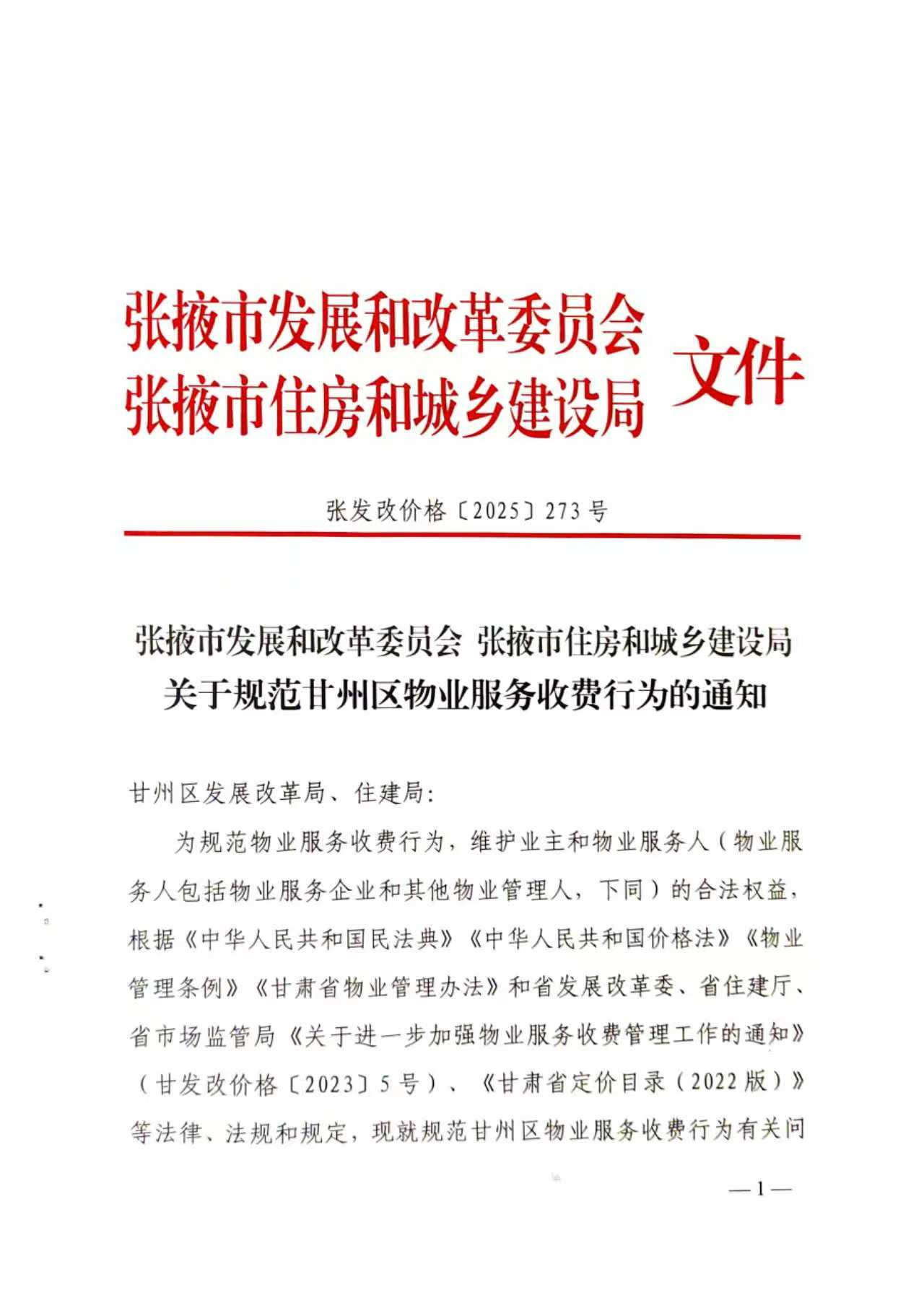 張掖市發(fā)展和改革委員會 張掖市住房和城鄉(xiāng)建設(shè)局 關(guān)于規(guī)范甘州區(qū)物業(yè)服務(wù)收費行為的通知