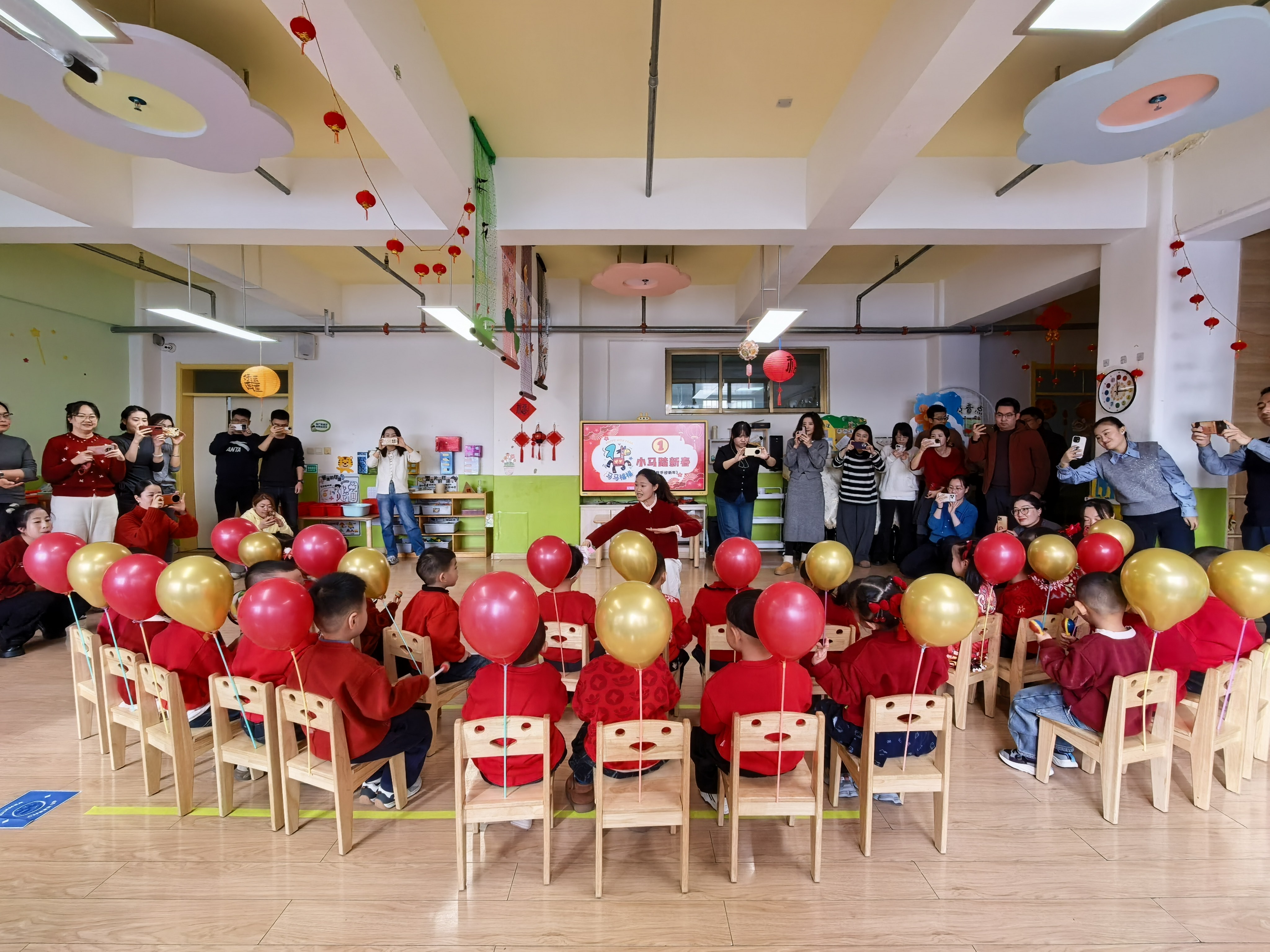 活動前期,教師借助故事講述、兒歌詠唱、民俗知識普及等方式讓幼兒深入了解元旦來歷與傳統(tǒng)年俗,不斷增強師幼民族自豪感與文化認同感。活動中各年級分層設計、亮點紛呈:小班以“萌娃迎新年 歡樂總動員”開展律動表演、自理闖關(guān)、巧制甜趣、報紙時裝秀等活動,增強幼兒自信心與集體歸屬感;中班圍繞“萌趣動物狂歡,童心喜迎新年”主題,通過角色扮演,結(jié)合運動智慧屋、建構(gòu)分享屋、益智思維屋等游戲打造沉浸式跨班奇遇體驗,提高幼兒社交適應和綜合能力發(fā)展;大班以“傳統(tǒng)文化浸潤童趣,歡樂游園喜迎新年”為主題舉辦新年集市活動,整合剪紙藝術(shù)、傳統(tǒng)游藝項目、非物質(zhì)文化遺產(chǎn)等多元文化內(nèi)容,在活動開展過程中兼顧幼兒能力培養(yǎng)與文化浸潤?;顒尤桃杂變簽楸荆谂囵B(yǎng)幼兒全面發(fā)展的同時,進一步凸顯了市幼兒園“樂生活、樂探索、樂溝通、樂審美”的發(fā)展目標和方向。