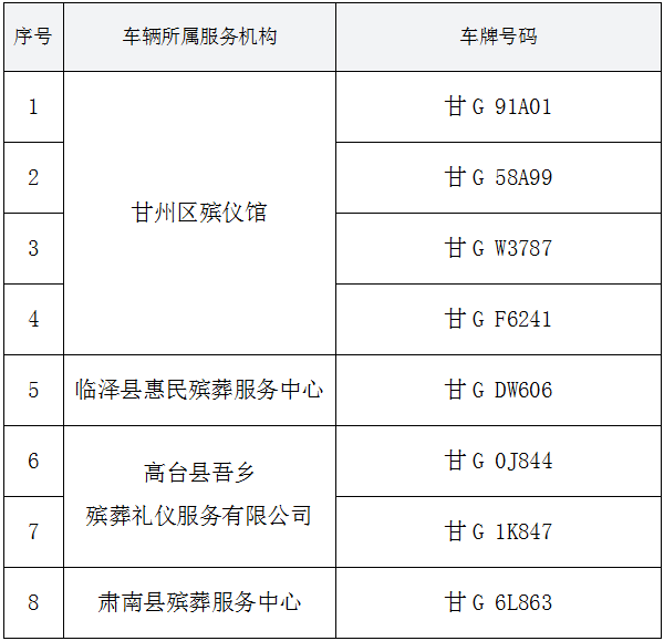 張掖市民政局關(guān)于民政系統(tǒng)殯葬服務車輛信息公告