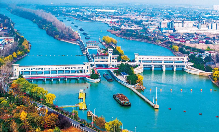 “十五五”時期,要研判把握水資源長遠供求趨勢、區(qū)域分布、結(jié)構(gòu)特征,統(tǒng)籌國家骨干網(wǎng)、省市縣水網(wǎng)協(xié)同建設(shè),加快推進南水北調(diào)后續(xù)工程高質(zhì)量發(fā)展,加快骨干輸配水通道和重要調(diào)蓄結(jié)點建設(shè),優(yōu)化水資源配置格局。圖為2024年12月13日拍攝的位于江蘇省揚州市江都區(qū)的南水北調(diào)東線一期工程運鹽閘、邵仙套閘、邵仙閘洞(無人機照片)?!⌒氯A社發(fā) 周社根/攝