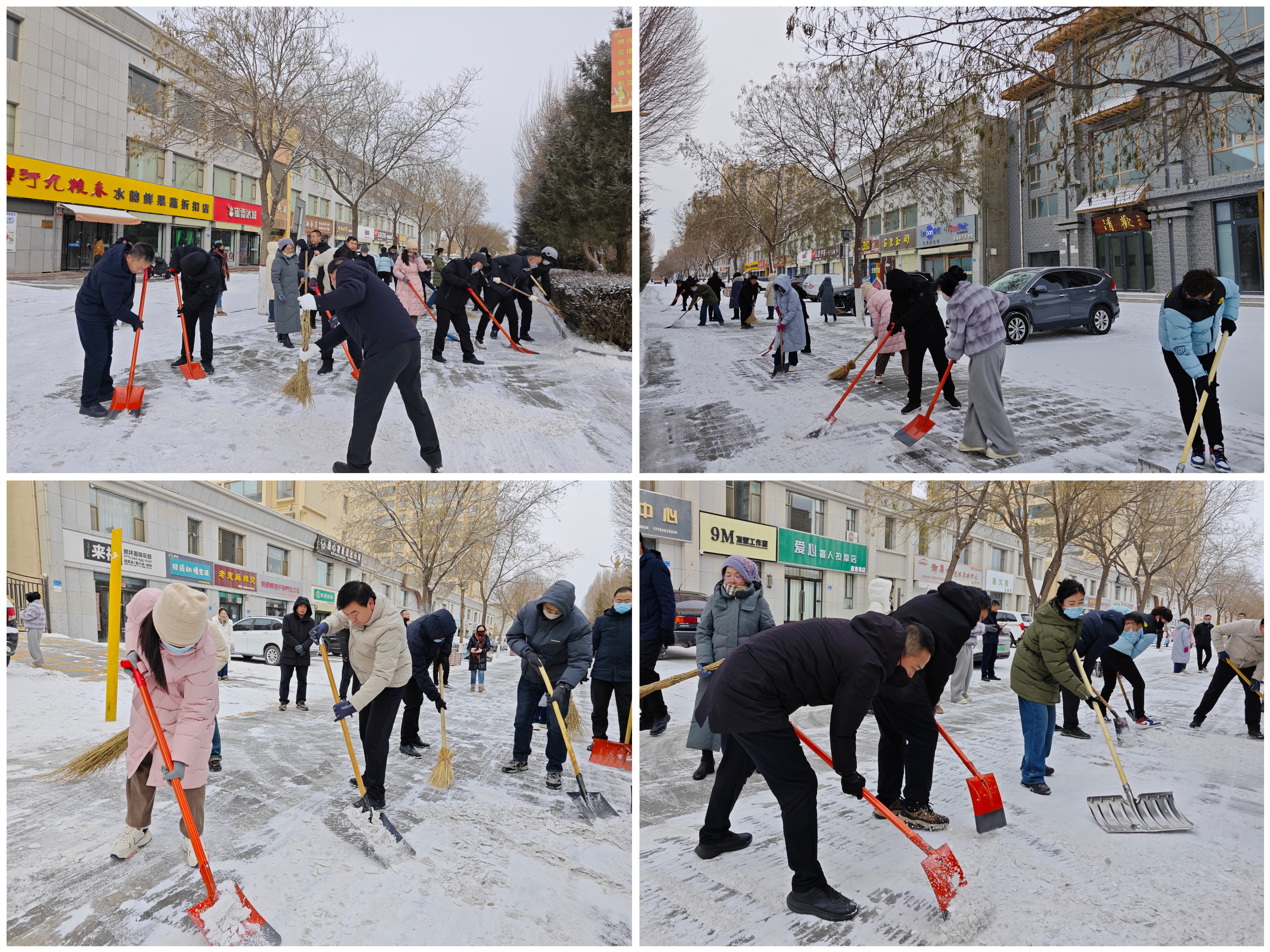 掃雪現(xiàn)場,局領(lǐng)導(dǎo)班子帶頭在前,干部職工積極響應(yīng)、踴躍參與,大家手持鐵鍬、掃帚等工具,分工協(xié)作,干勁十足。有的奮力清掃路段積雪,有的重點鏟除路面薄冰,有的配合清理積雪堆,忙碌的身影在皚皚白雪中形成一道亮麗的風(fēng)景線。經(jīng)過數(shù)小時的連續(xù)奮戰(zhàn),包抓路段主要通行道路的積雪和薄冰被清除,為過往行人、車輛清理出一條“暖心路”。