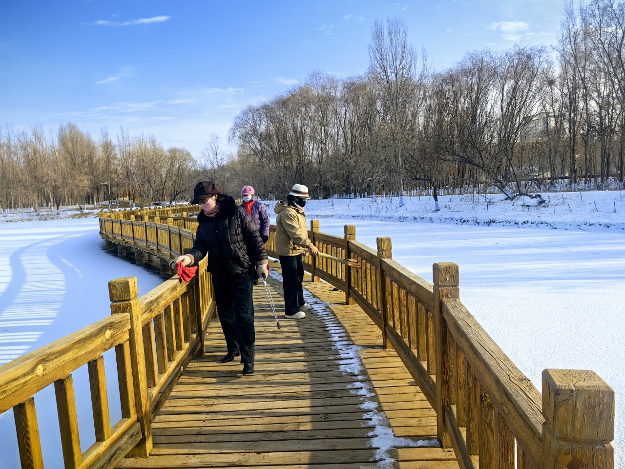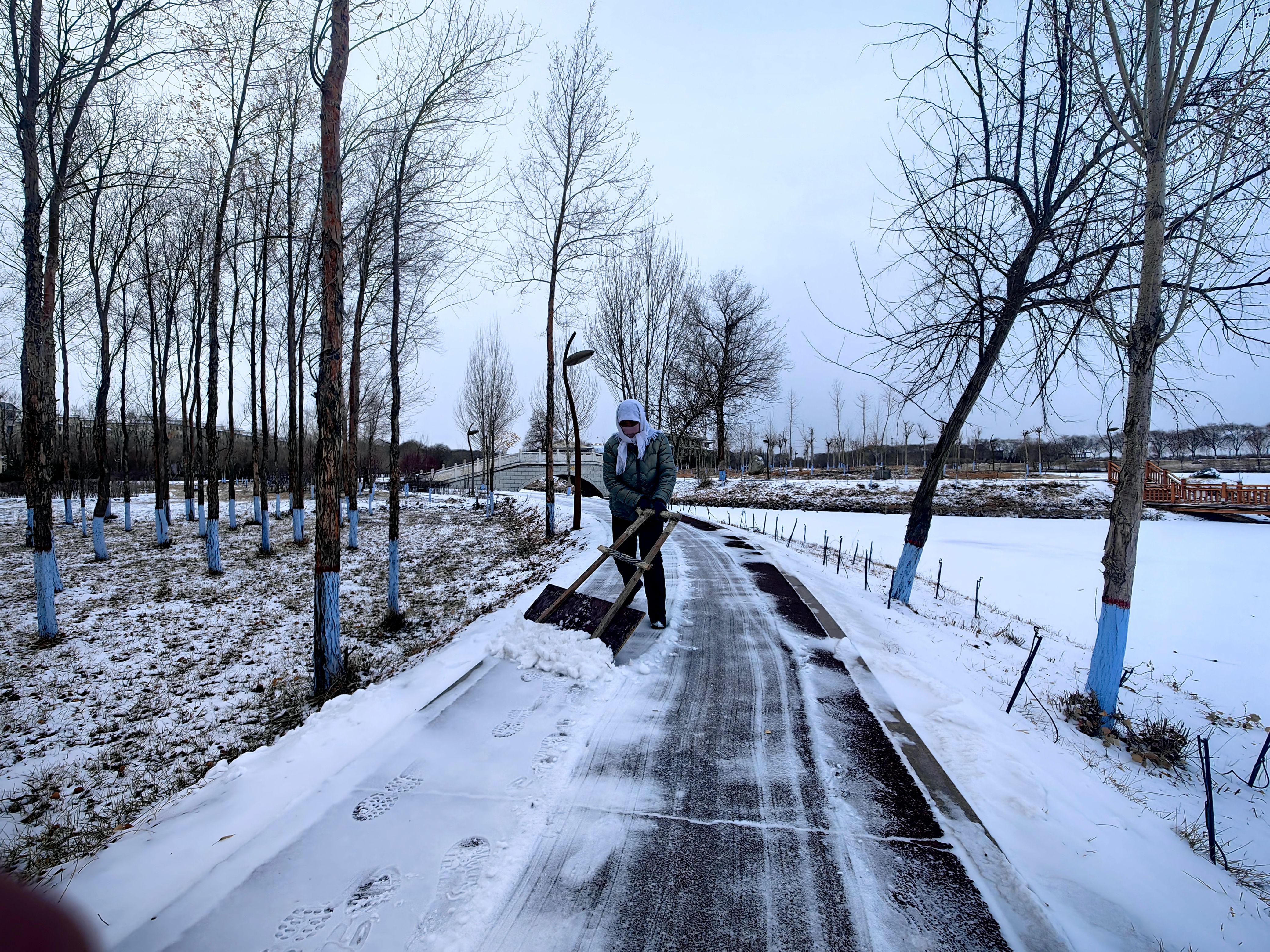 行動快,除冰雪保暢通。面對降雪帶來的出行隱患,縣濕地局“以雪為令”,第一時間組織全體干部職工及公園管護人員,對管理責(zé)任區(qū)域及濕地公園內(nèi)主干道、棧道、廣場等關(guān)鍵點位進行掃雪除冰。大家不畏嚴(yán)寒、干勁十足,及時清理出一條條“安全路”“暖心道”,有力保障了市民游客的出行安全和游園體驗。