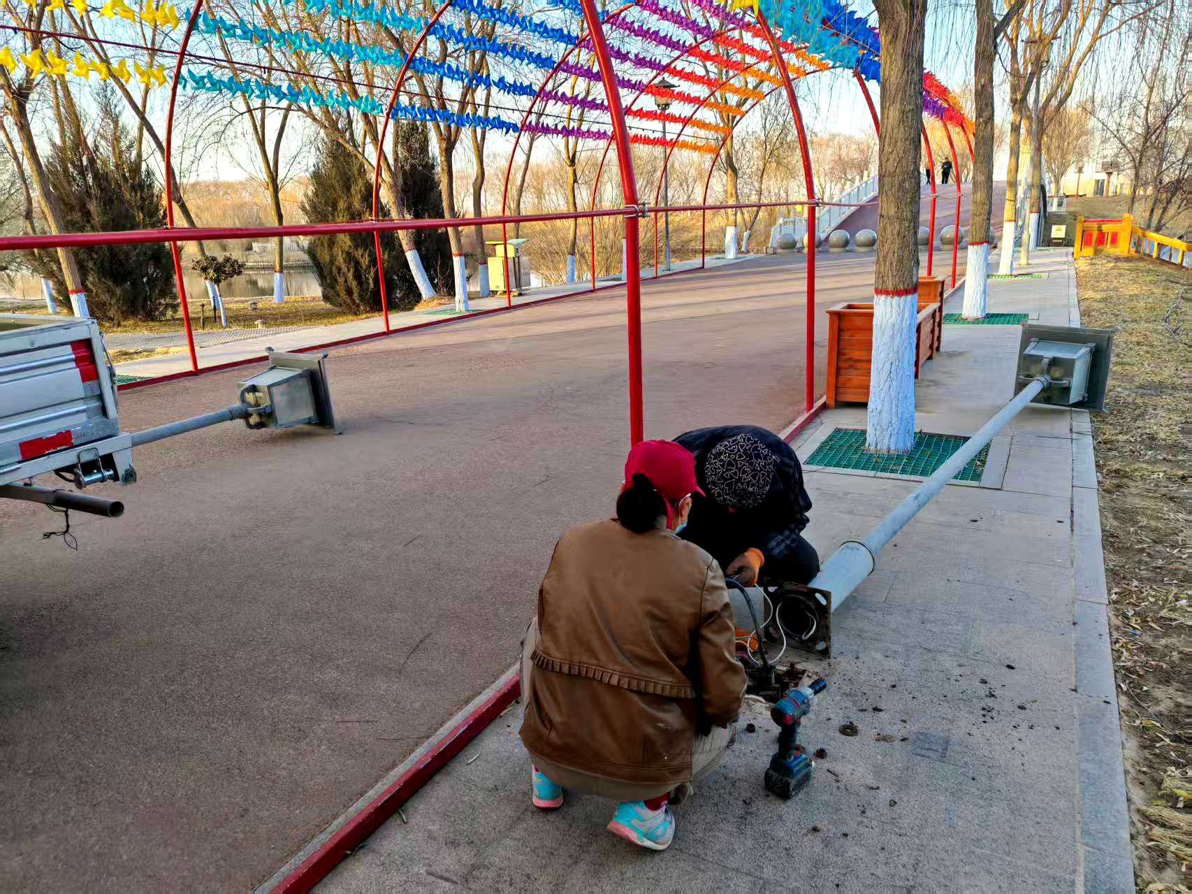 維護勤,排隱患提品質(zhì)。公共設(shè)施的完善與安全,是城市文明的細(xì)節(jié)體現(xiàn)。縣濕地局組織專業(yè)人員對園內(nèi)步道護欄、休閑座椅、標(biāo)識標(biāo)牌、照明燈具、健身器材等進行全面體檢與及時維修。通過加固松動部位、修復(fù)損壞設(shè)施、更新模糊標(biāo)識等一系列細(xì)致工作,有效消除了安全隱患,進一步增強了公園的服務(wù)功能與游客休憩的舒適度。