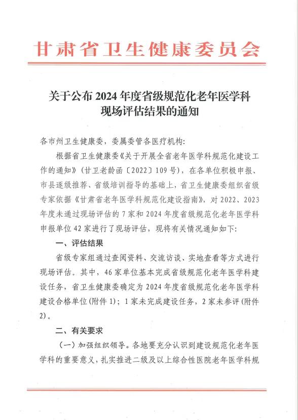 高臺(tái)縣中醫(yī)醫(yī)院老年醫(yī)學(xué)科獲評(píng)省級(jí)規(guī)范化建設(shè)合格單位